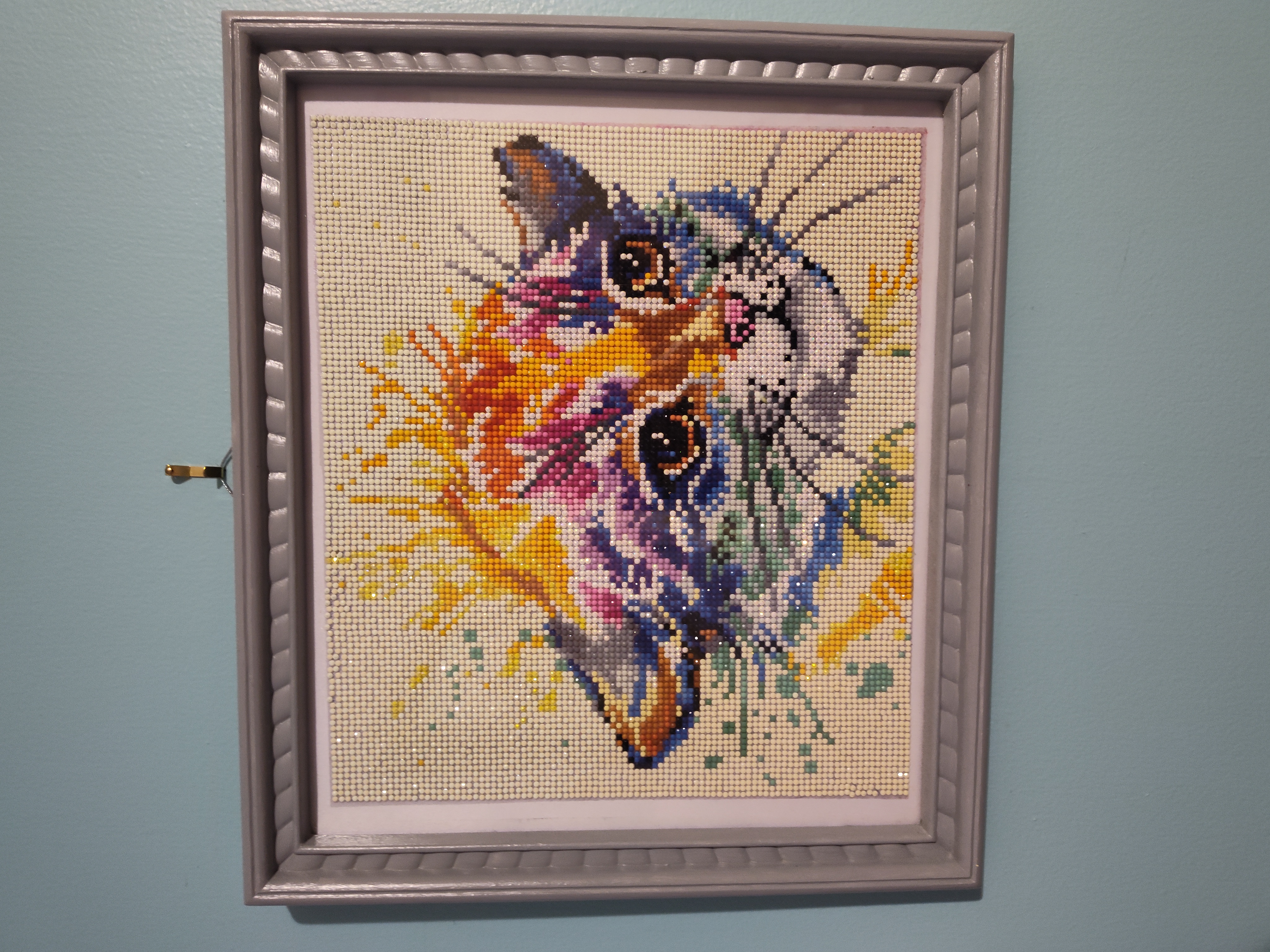 Diamond art is a kit that includes a canvas and plastic "drills". The craft is like doing a paint by number with plastic diamonds. The canvas is already sticky, so all you have to do is place the correct colors in the correct places.